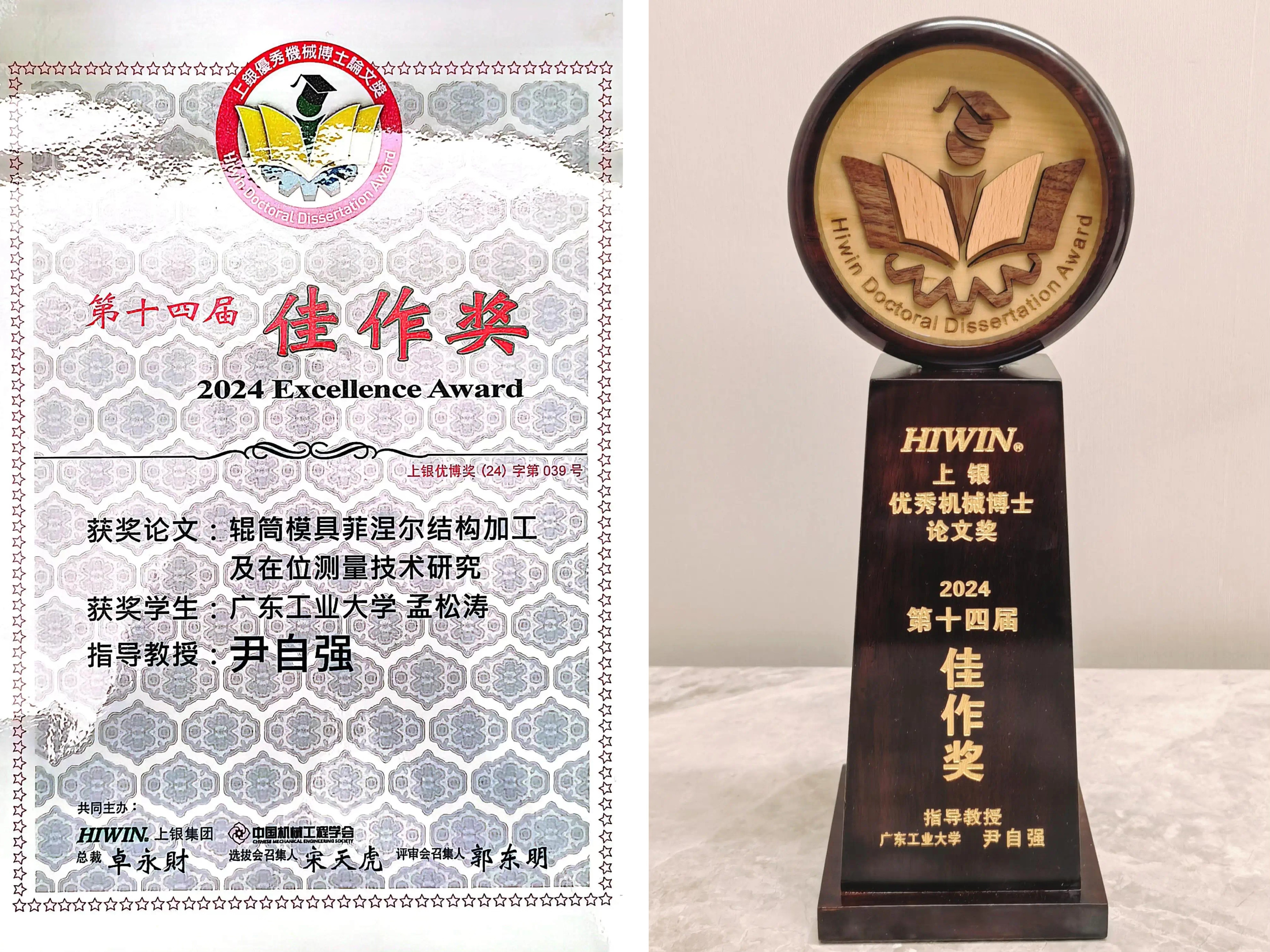 1月4日,第十四届“上银优秀机械博士论文奖”颁奖典礼在杭州举行。JY在线平台机电工程学院孟松涛博士(导师:尹自强教授)的博士学位论文《辊筒模具菲涅尔结构加工及在位测量技术研究》荣获“佳作奖”。